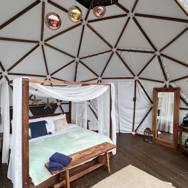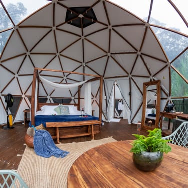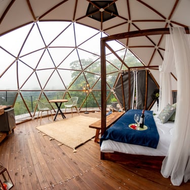 Disfruta de este mágico momento desde la comodidad de tu espacio, ya sea en la terraza privada o a través de las amplia transparencia de tu glamping. La naturaleza se convierte en un lienzo en constante cambio, pintando paisajes inolvidables mientras te relajas en la tranquilidad del glamping. Sumérgete en la belleza efímera de estos atardeceres, donde la conexión con la naturaleza se fusiona armoniosamente con el lujo de tu experiencia glamping.